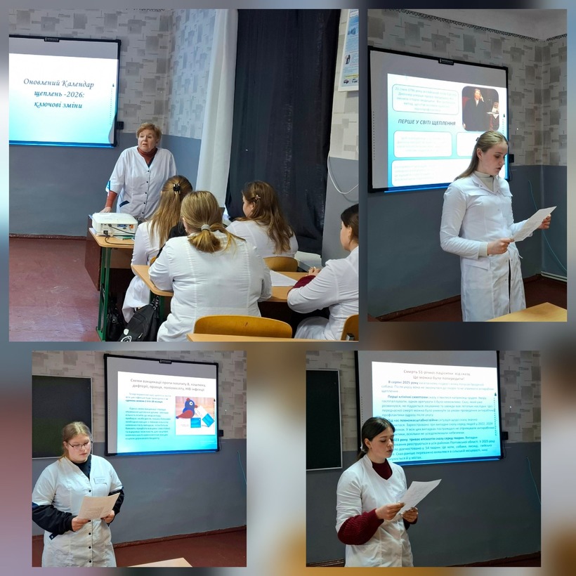 У Лохвицькому медичному фаховому коледжі відбулася важлива Інформаційна година для студентів 3-х та 4-х курсів. Захід провела викладач Плохіх Т.В. Ключова тема зустрічі — «Що зміниться у Національному календарі щеплень з 2026 року?».