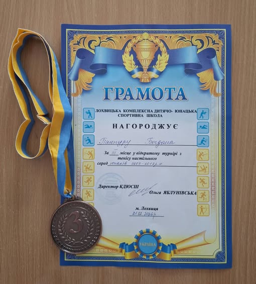 Щиро вітаємо Панпуру Богдана зі здобуттям III місця у відкритому турнірі з тенісу настільного серед юнаків 2009-2012 р.н.